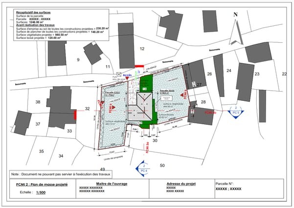 2. *PCMI 02 – Plan de masse (implantation du projet sur le terrain, échelle 1/500 ou 1/200)*