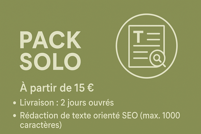 Je vous propose un service de rédaction professionnelle orientée SEO, qui allie pertinence, lisibilité et optimisation.