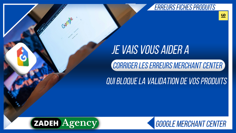 ZADEH AGENCY VOUS PROPOSE SON AIDE POUR CORRIGER ET RÉPARER LES ERREURS DE FLUX OU FICHES PRODUITS GOOGLE MERCHANT CENTER QUI BLOQUE L’APPROBATION ET LA PRÉSENCE DE VOS PRODUITS SUR GOOGLE