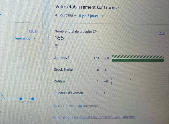 | ⚡ Suivi actif pendant 03 jours jusqu’à la ré-approbation de vos produits à nouveaux dans Merchant Center |