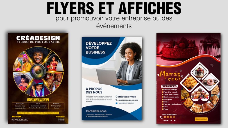 Je vais créer des flyers et affiches percutants pour promouvoir vos événements et entreprises