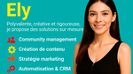 Je suis Ely, 27 ans, passionnée par l’univers digital, la communication et les marques authentiques. J’accompagne depuis plusieurs années des entrepreneurs et indépendants dans les secteurs de la mode, de la cuisine, de la restauration et des réseaux de vente à développer leur image de marque, leur présence en ligne et leur relation client, en France comme à l’international. Polyvalente, créative et rigoureuse, je propose des solutions sur mesure : community management, création de contenu, stratégie marketing, mais aussi automatisation, CRM, reporting et gestion de projets digitaux. Je travaille en français, en espagnol et en anglais selon vos besoins, avec une approche humaine, adaptable et orientée résultats. 🎯 Services proposés : • Stratégie de contenu adaptée à votre marque et vos objectifs • Création de contenu personnalisé (posts, stories, reels, visuels...) • Élaboration d’une identité visuelle cohérente • Animation de vos réseaux sociaux (Instagram, Facebook, TikTok…) • Activation de votre communauté et prospection de nouveaux clients • Étude de marché, veille concurrentielle, analyse de positionnement • Reporting & recommandations d’optimisation régulières • Création de pages ou mini-sites en accord avec votre univers • Gestion de projets digitaux et marketing externalisés • Mise en place d’outils de suivi, automatisation et CRM ⚙️ Outils & automatisation • Waalaxy pour la prospection automatisée • Zoho CRM & Zoho One pour organiser, segmenter, relancer vos prospects • WhatsApp Business pour créer des canaux directs avec vos clients • Notion / Google Sheets pour centraliser vos performances et suivre vos KPI