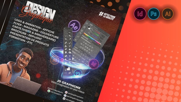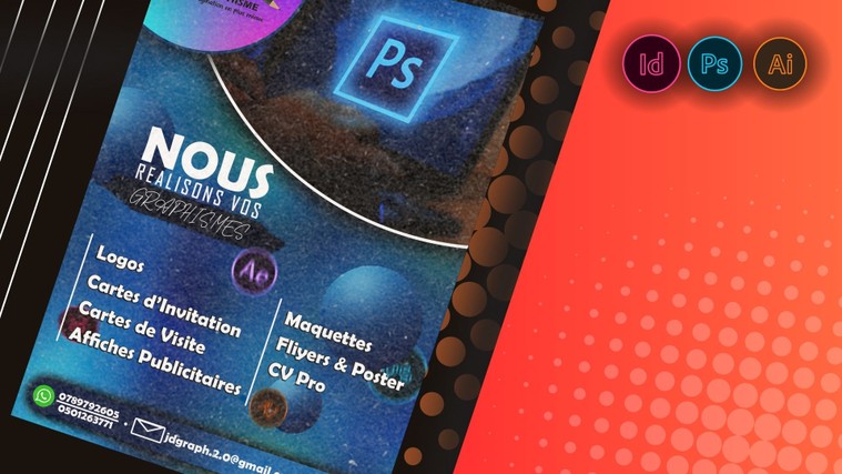 Bonjour et bienvenue sur mon profil COMEUP Je suis designer graphique passionné avec plusieurs années d'expérience dans la création visuelle pour les entreprises, les entrepreneurs et les créateurs de contenu. Mon objectif : donner vie à vos projets à travers des designs uniques, modernes et adaptés à vos besoins. Ce que je propose : ✔ Création de logos professionnels et identités visuelles complètes ✔ Conception de flyers, affiches, bannières et supports publicitaires ✔ Visuels pour les réseaux sociaux (Instagram, Facebook, LinkedIn, etc.) ✔ Présentations PowerPoint et documents professionnels attrayants ✔ Design de packaging et d’étiquettes produit ✔ Retouche et montage d'images Que vous soyez une startup, un artisan, un influenceur ou une grande entreprise, je m’adapte à votre univers et je vous accompagne jusqu’à la satisfaction totale. Pourquoi me faire confiance ? -Créativité et sens du détail -Communication claire et réactive -Livraison rapide et respect des délais -Modifications incluses jusqu'à satisfaction -Fichiers prêts à l'emploi (formats JPG, PNG, PDF, vectoriel…) Votre image est votre premier atout, confiez là à un professionnel ! Contactez moi dès maintenant, discutons ensemble de votre projet.
