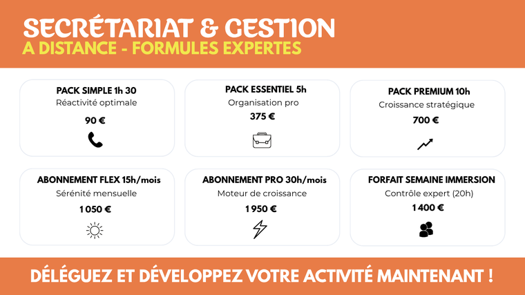 **PACK ESSENTIEL 5h** - je vais gérer vos tâches administratives courantes pour vous faire gagner un temps précieux : 439,61 $US TTC