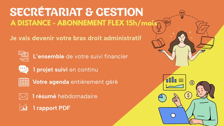 **ABONNEMENT FLEX 15h/mois** - je vais devenir votre bras droit administratif pour une gestion fluide et continue de votre activité : **1 230,92 $US**