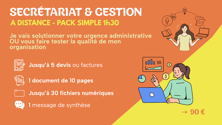 **PACK SIMPLE 1h30** - je vais solutionner votre urgence administrative OU vous faire tester la qualité de mon organisation : 105,51 $US