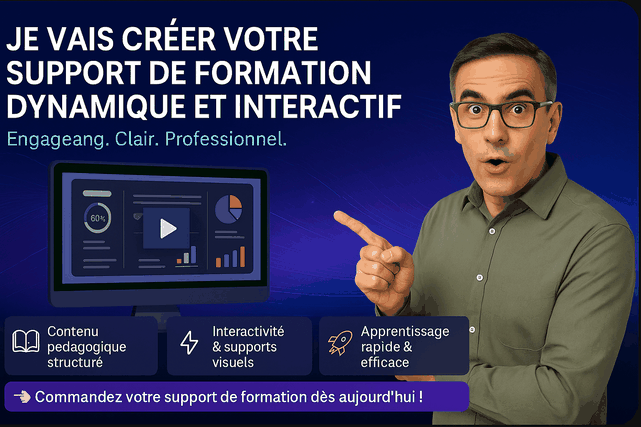 Avec une expertise solide en ingénierie pédagogique et en traitement de données, je transforme vos contenus en parcours de formation structurés, faciles à suivre et riches en valeur pour les apprenants.