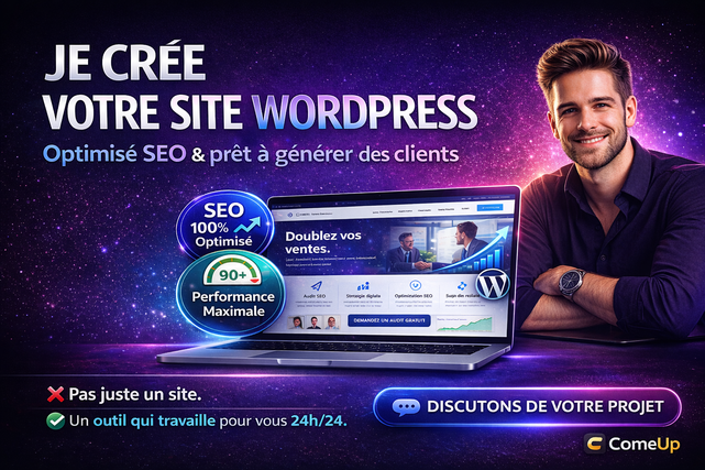 Contactez-moi dès maintenant pour lancer votre site WordPress ou boutique en ligne professionnel, sécurisé et optimisé SEO, prêt à attirer et convertir vos clients.