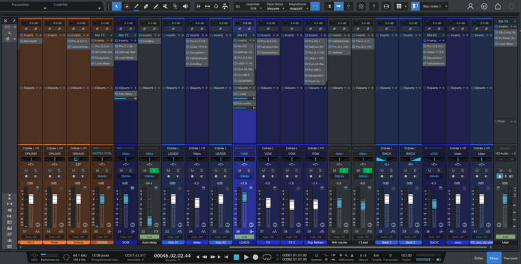 Autotune, EQ, compression, effets, placements dans le champ stéréo