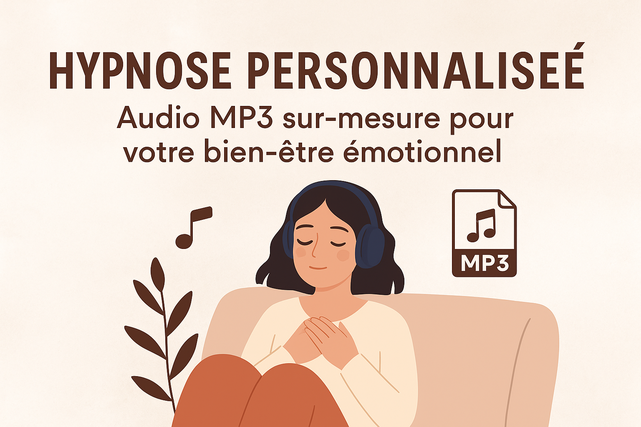 Je suis hypnothérapeute diplômée et passionnée, spécialisée dans l'accompagnement sur-mesure. Je vous propose une séance audio personnalisée en MP3, à écouter à tout moment : pour mieux dormir, gérer le stress, traverser une période difficile, arrêter de fumer, apaiser une émotion… C’est vous qui choisissez la thématique.