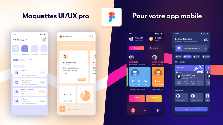 Je vais concevoir les maquettes UI/UX professionnelles de votre application mobile avec Figma