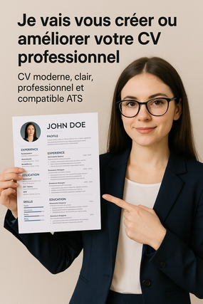 Vous postulez sans retour ? Votre CV n’est peut-être pas à la hauteur. Je vous propose un **CV moderne, clair, professionnel et compatible ATS** pour attirer l'attention des recruteurs.