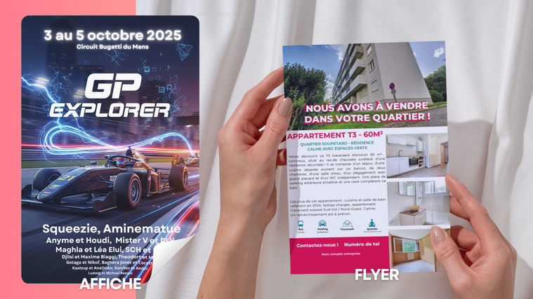 Je vais un flyer ou une affiche professionnelle, design et personnalisée