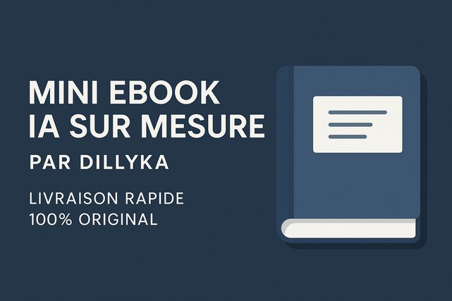 Salut, moi c’est Dillyka ! Je suis passionné(e) par l’intelligence artificielle et la création de contenus digitaux. Je propose des mini ebooks professionnels, réalisés rapidement avec l’IA, sur le thème de votre choix. Mon objectif : vous offrir des livrables efficaces, prêts à vendre ou à utiliser ! N’hésitez pas à me contacter, je suis réactif(ve) et à l’écoute.
