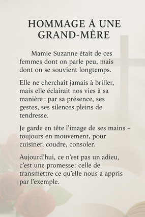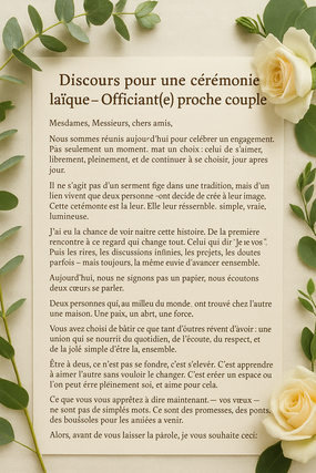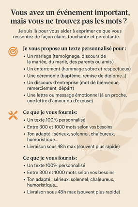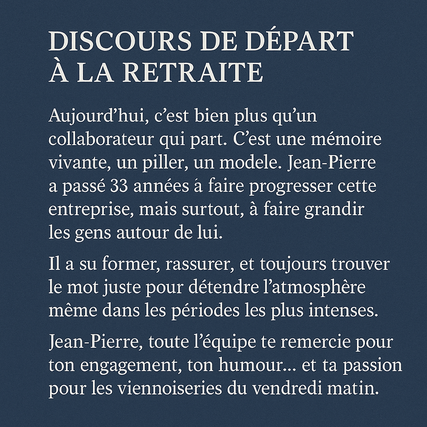 Je vais rédiger votre discours ou texte personnalisé pour tout événement