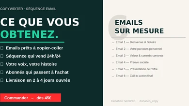 Proposé par Donatien_copy •Email Copywriter E-commerce | Séquences narratives qui transforment vos abonnés en clients fidèles Vente au total 0