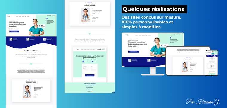 ➤Jusqu’à 8 sections personnalisées (ex. : Accueil, À propos, Services, Témoignages, Contact)