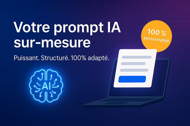 - Un prompt sur-mesure, livré en 24h, adapté à votre usage professionnel. Prix : 17,61 $US.