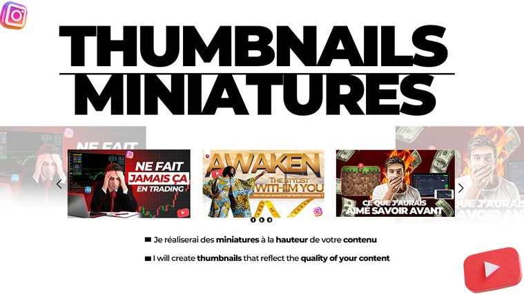 Je m'occuperai de la recherche d'images et vous livrerai les vignettes YouTube au format que vous préférez PNG, JPG ou SVG, prête à l'emploi. Je propose également des révisions illimitées pour garantir votre entière satisfaction.