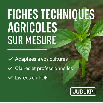 Gagnez du temps, améliorez vos rendements et valorisez votre projet grâce à des fiches techniques personnalisées, professionnelles et prêtes à l'emploi, rédigées par un spécialiste en production végétale.