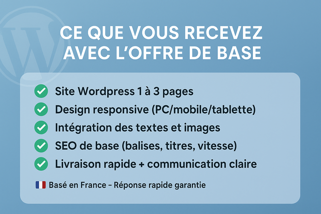 Aujourd’hui, je vous propose un site vitrine WordPress simple et optimisé, livré rapidement, parfaitement adapté à vos besoins.
