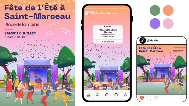 - La création de 2 visuels statiques (post, story, bannière ou slide)