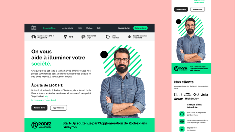 - Un design attractif, unique et sur mesure (sans template, sans IA), respectant votre brief.