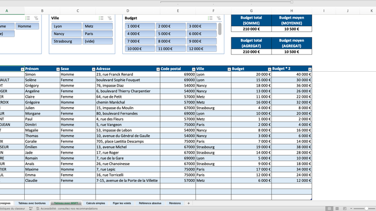 Résolution ciblée d’un problème sur Excel grâce à la création ou l’optimisation d’une formule (simple ou avancée).