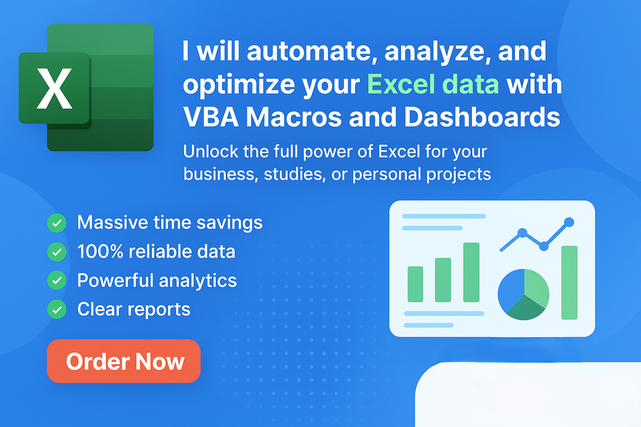 I will automate, analyze, and optimize your Excel data with VBA Macros and Dashboards