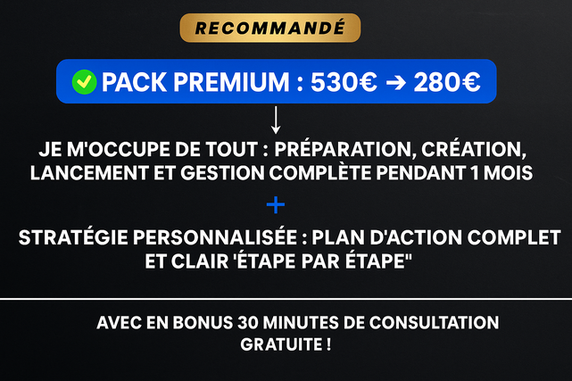 Suivi, reporting & ajustements hebdomadaires inclus.