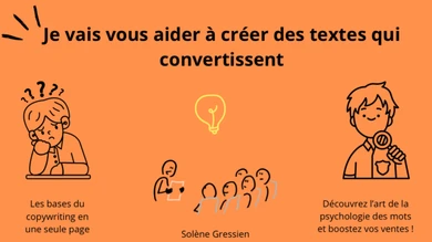 ✨ Bienvenue dans mon univers de copywriting bilingue ! Je suis Solène, copywriter française passionnée par les mots (et leur pouvoir) aussi bien en français qu'en anglais. Mon objectif ? Transformer vos idées en textes percutants qui attirent, engagent et convertissent. 💡 Que ce soit pour : créer une page de vente qui donne envie d'acheter, mettre en avant vos services avec un ton clair, original et professionnel ou encore adapter vos contenus en anglais/français pour toucher un public plus large, 👉Je mets mon expertise et ma créativité au service de votre projet. Mon approche est simple : authenticité + stratégie. Pas de jargon inutile, pas de robotisation du texte. Juste des mots spécialement pensés pour votre audience, afin de créer une vraie connexion. ☀️ Pourquoi travailler avec moi ? Je suis bilingue français/anglais, avec une vraie sensibilité culturelle, J'ai une expérience en communication et en gestion, ce qui me permet de comprendre vos enjeux business, Et surtout : je prends le temps de vous écouter pour créer un contenu qui VOUS ressemble. ➡️ Alors, on travaille ensemble ?