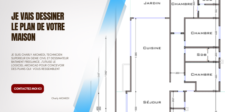 Salut, je suis Charly, technicien supérieur en génie civil et Dessinateur bâtiment. Je mets mon expertise à votre service pour la réalisation de vos projets architecturaux.