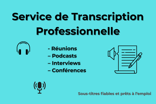 Je propose un service professionnel de transcription pour vos fichiers audio et vidéo, incluant réunions, podcasts, interviews, conférences, ou tout autre contenu multimédia.