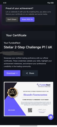 Spécialisé dans le trading de devises et d’indices, j’ai acquis une solide expérience sur les marchés financiers. Depuis février 2024, je fais partie des traders élites de la prop firm FundedNext, où je gère des capitaux externes avec rigueur et discipline.