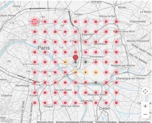 1. Carte de positionnement Google Maps (heatmap) sur 1 mot-clé et votre zone locale
