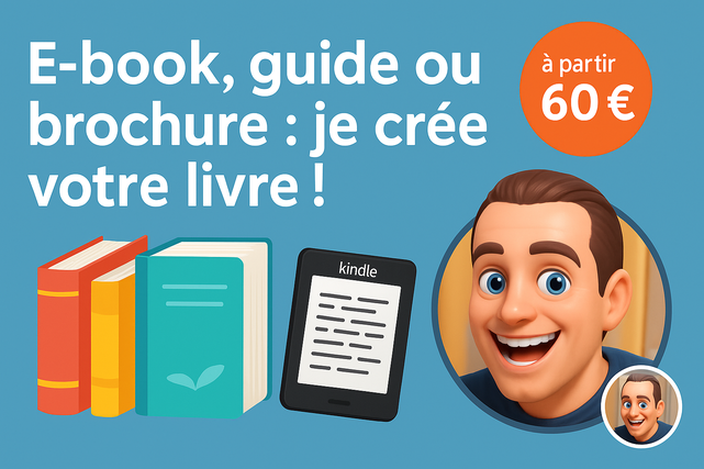Je m’occupe de la rédaction, de la mise en page et de la préparation des fichiers prêts à être publiés sur Amazon KDP (ou autres plateformes).