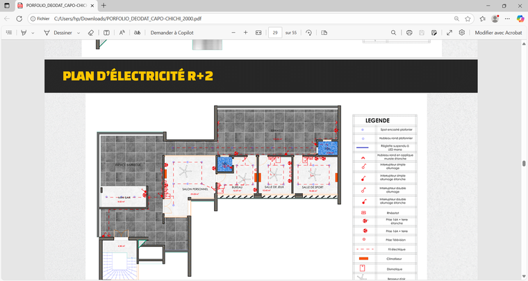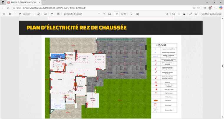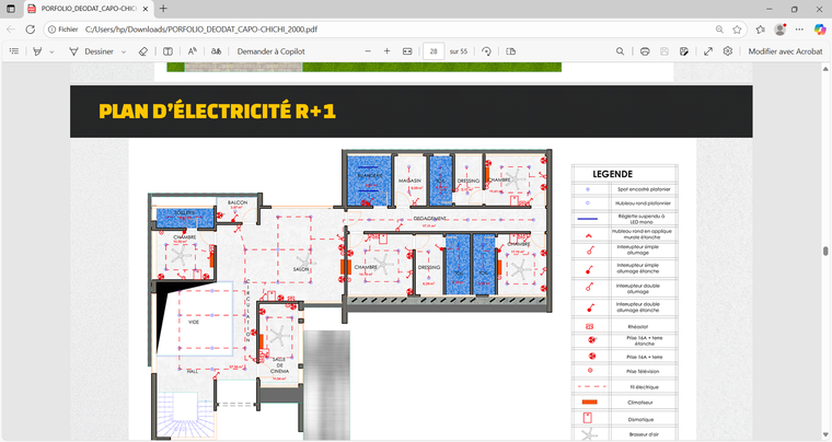Je ne me contente pas de tracer des lignes sur un plan : grâce à mon parcours en **génie civil**, j’ai une compréhension globale des contraintes d’un bâtiment et de son fonctionnement. Cela me permet de réaliser des plans électriques **réalistes, cohérents et parfaitement intégrés** à l’architecture existante. Vous bénéficiez ainsi de l’expertise d’un professionnel qui sait anticiper les besoins, optimiser l’implantation des circuits et garantir la conformité technique.