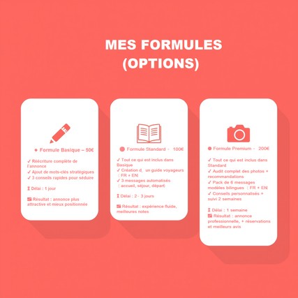 Je vous propose mes 3 formules Airbnb.