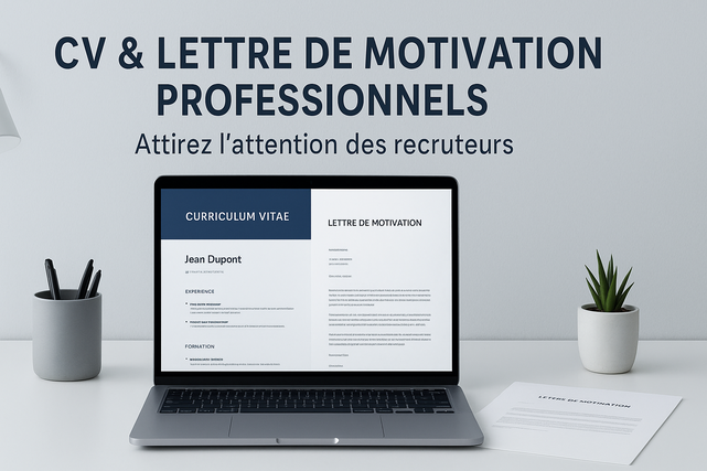 Je vous propose de créer un CV moderne, clair et adapté à votre profil, ainsi qu’une lettre de motivation personnalisée pour maximiser vos chances auprès des recruteurs.