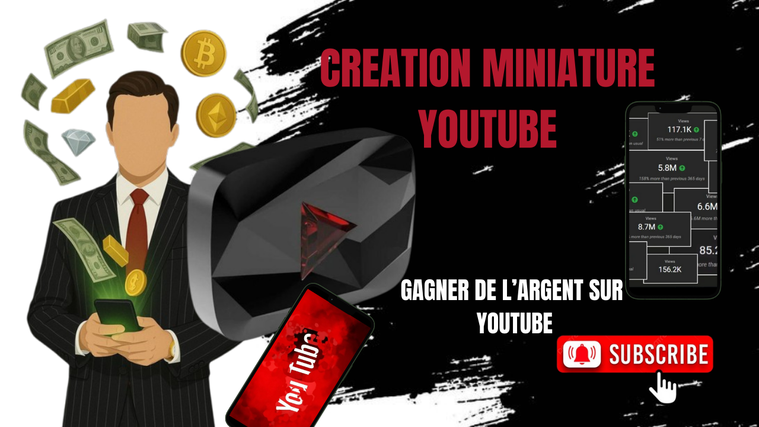 Je suis graphiste spécialisé dans la création de miniatures YouTube percutantes.