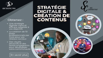 🚀 Bienvenue ! Vous cherchez un expert pour propulser votre business en ligne ? Vous êtes au bon endroit ! Avec plusieurs années d’expérience en marketing digital, prospection et création de contenus, j’aide les entreprises et entrepreneurs à : ✔ Attirer plus de clients avec des stratégies éprouvées ✔ Augmenter leurs ventes grâce à des publicités performantes ✔ Automatiser leur communication pour gagner du temps 💡 Pourquoi travailler avec moi ? ✅ Une approche personnalisée adaptée à votre besoin ✅ Une équipe de freelances qualifiés pour un travail rapide et efficace ✅ Des résultats mesurables pour booster votre business ✨ Mes services : 🔹 Création de contenus visuels et vidéos engageants 🔹 Publicité Facebook & TikTok Ads (gestion complète) 🔹 Rédaction de textes persuasifs (copywriting & storytelling) 🔹 Prospection et génération de leads pour augmenter vos ventes 🔹 Création de sites web optimisés (One Page, e-commerce, etc.) 🔹 Consulting en stratégie digitale 💰 Tarification flexible selon votre projet 🔹 Contactez-moi dès maintenant pour une consultation gratuite et boostons votre projet ensemble 🚀 👇Pour plus d'infos 👇 https://sagessebanga.my.canva.site/passez-au-niveau-sup-rieur-avec-sbk-digital-pro-agency