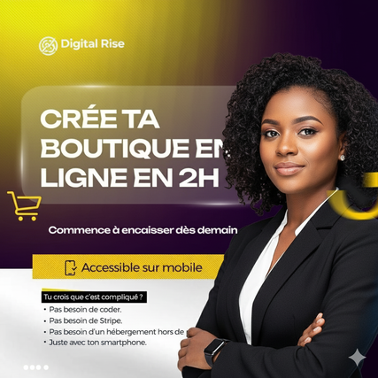 Tu rêves de vendre en ligne, mais tu ne sais pas par où commencer ? Pas de panique, je t’ai couvert. Avec mon service de création de boutique digitale clé en main sur Chariow, tu auras une boutique prête à vendre, sans prise de tête, et adaptée à l’Afrique. Oui, sans compétences techniques, sans coder, sans galérer à comprendre des plateformes compliquées.