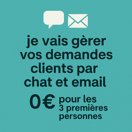 🛑 Professionnelle du Service Client – Emailing & Chat Tu reçois des emails et des messages clients chaque jour… Mais parfois, les réponses tardent, s’accumulent ou manquent de chaleur. Résultat ? Des clients frustrés, une image écornée, et une fidélité qui s’effrite. 🛑 STOP Un service client froid ou désorganisé peut te coûter beaucoup plus cher que tu ne le crois. Imagine à la place : Des réponses rapides, personnalisées, professionnelles… Un client qui se sent écouté, compris et respecté à chaque interaction. Une relation qui transforme un simple acheteur en client fidèle. C’est exactement ce que je t’apporte. ✅ Emails clairs, engageants et sans erreurs ✅ Chats fluides et réactifs qui rassurent immédiatement tes clients ✅ Gestion efficace des demandes et réclamations, sans stress ni perte de temps ✅ Une communication qui inspire confiance et professionnalisme Ton service client devient alors un atout puissant de fidélisation et non plus une simple tâche à gérer. L’expérience client, c’est la mémoire qu’ils garderont de ton entreprise. Fais en sorte qu’elle soit inoubliable. ➡️ Confie-moi ton service client dès aujourd’hui et offre à tes clients une prise en charge qui dépasse leurs attentes.
