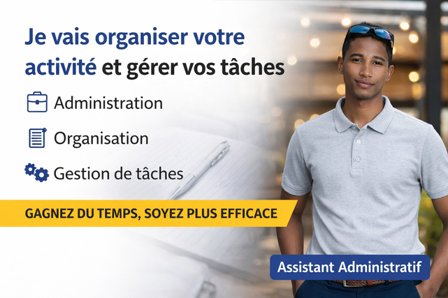 Vous êtes entrepreneur ou gérant et vous vous sentez débordé par vos tâches quotidiennes ? Je vous propose de vous aider à mieux organiser votre activité afin de gagner du temps et travailler plus efficacement. Grâce à mes compétences en administration et gestion de projet, je peux vous accompagner pour : ✔ Organiser vos tâches et priorités ✔ Structurer votre activité ✔ Mettre en place un système simple de suivi (Google Sheets / Notion) ✔ Améliorer votre organisation quotidienne 🎯 Objectif : vous faire gagner du temps et réduire votre charge mentale