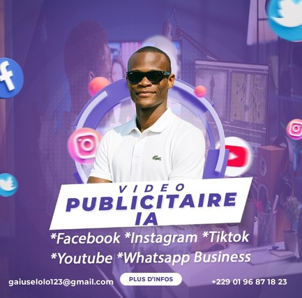 Vous avez une entreprise mais peu de visibilité ? Peu de ventes ? Des publicités qui ne convertissent pas ? Aujourd’hui, la vidéo est le format qui attire le plus de clients. 🚀 Plus de panique vous avez solution Je crée pour vous une vidéo publicitaire professionnelle générée avec l’IA, optimisée pour :Facebook, Instagram, TikTok, WhatsApp Business Grâce à des outils puissants comme : CapCut, Canva 🎬 Ce que vous recevez ✔ Script marketing optimisé ✔ Vidéo HD ✔ Sous-titres dynamiques ✔ Musique tendance ✔ Appel à l’action clair ⭐ Pourquoi moi ? Approche orientée résultats Livraison rapide * Communication fluide * Vision marketing moderne