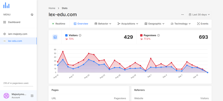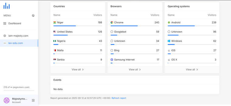 Vous bénéficiez d’un accès complet pour analyser vos visiteurs, pages vues et sources de trafic.