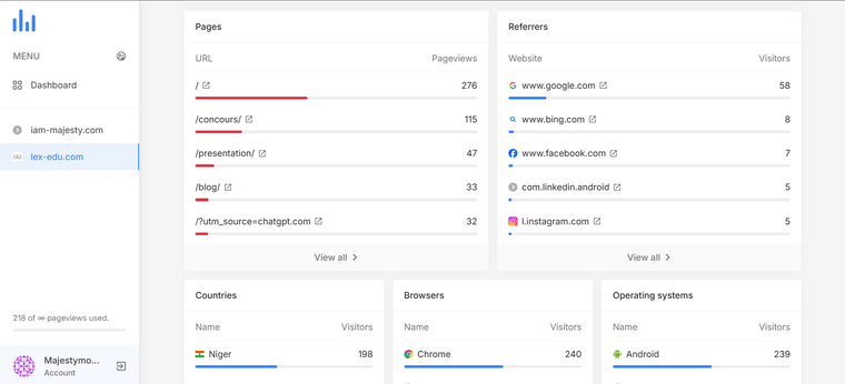 Avec mon outil, vous pourrez suivre vos visiteurs en quelques clics, comprendre ce qui fonctionne sur votre site et améliorer votre performance en toute simplicité.