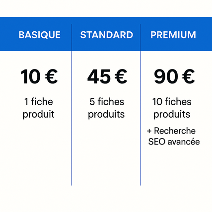 Pour le prix de base, je rédige 1 fiche produit complète et optimisée SEO comprenant :