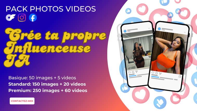 Je crée ton influenceuse virtuelle 100% générée par IA, unique, personnalisée et prête à l’emploi pour ton compte Instagram ou tout autre projet marketing. Aucune personne réelle n’est impliquée : tu deviens le seul propriétaire de cette identité digitale.