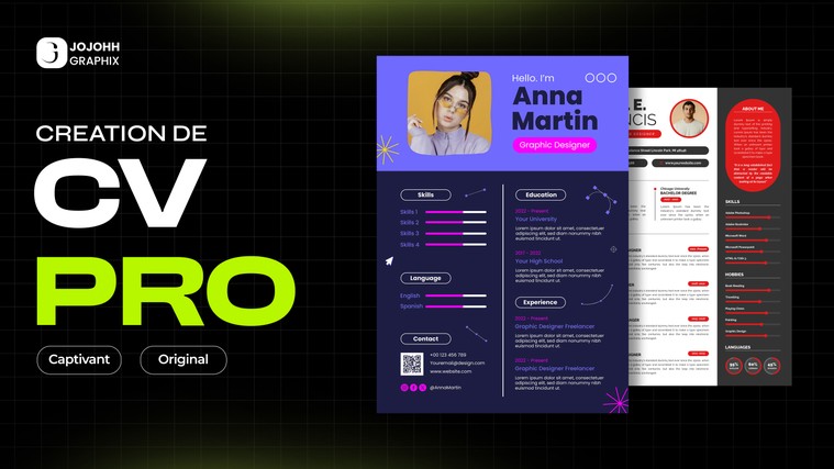Avec plus de 5 ans d’expérience en design graphique et en création de documents professionnels, je vous propose un CV PRO au design captivant et original, conçu pour mettre en valeur vos compétences et maximiser vos chances d’être retenu.